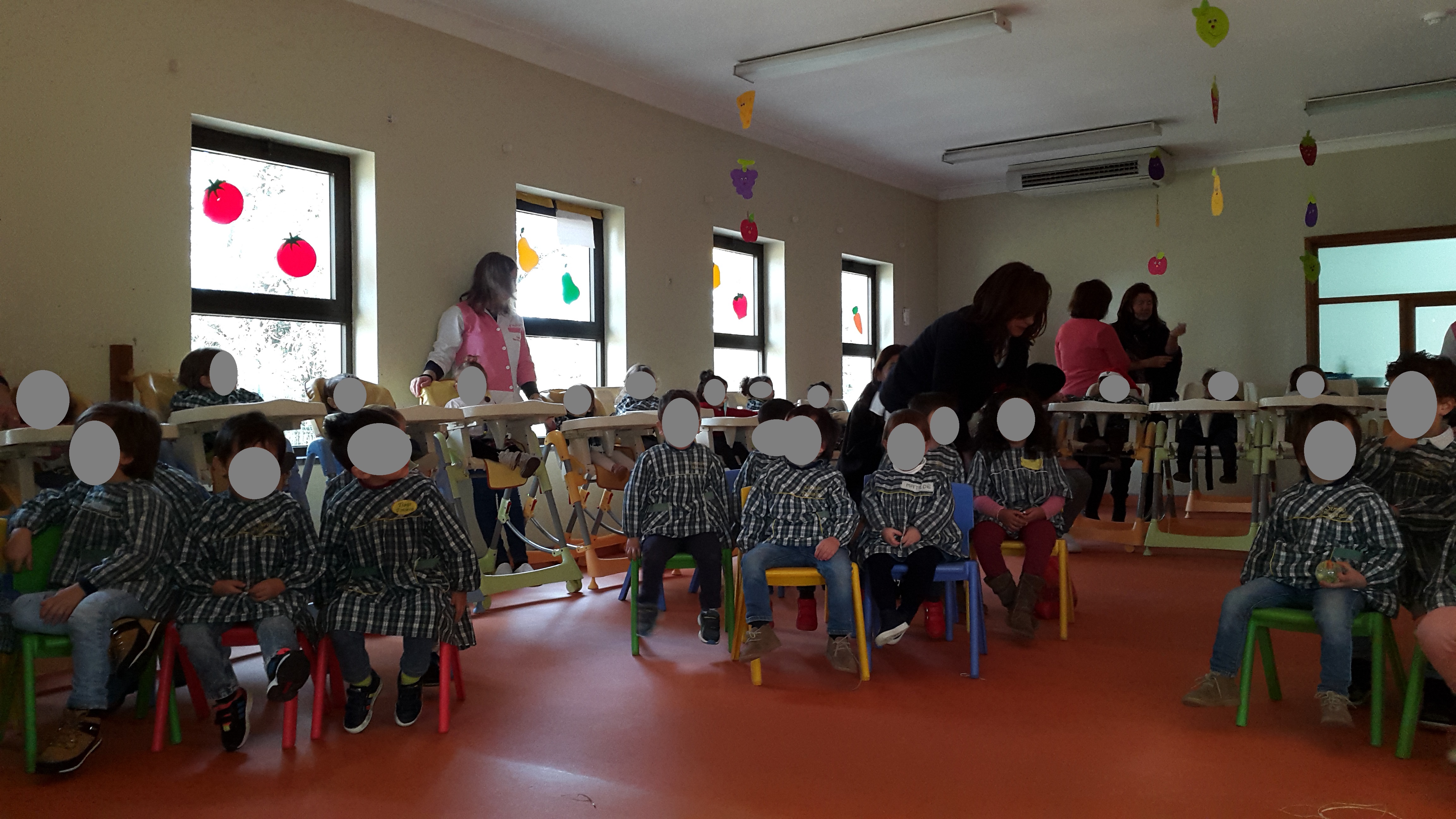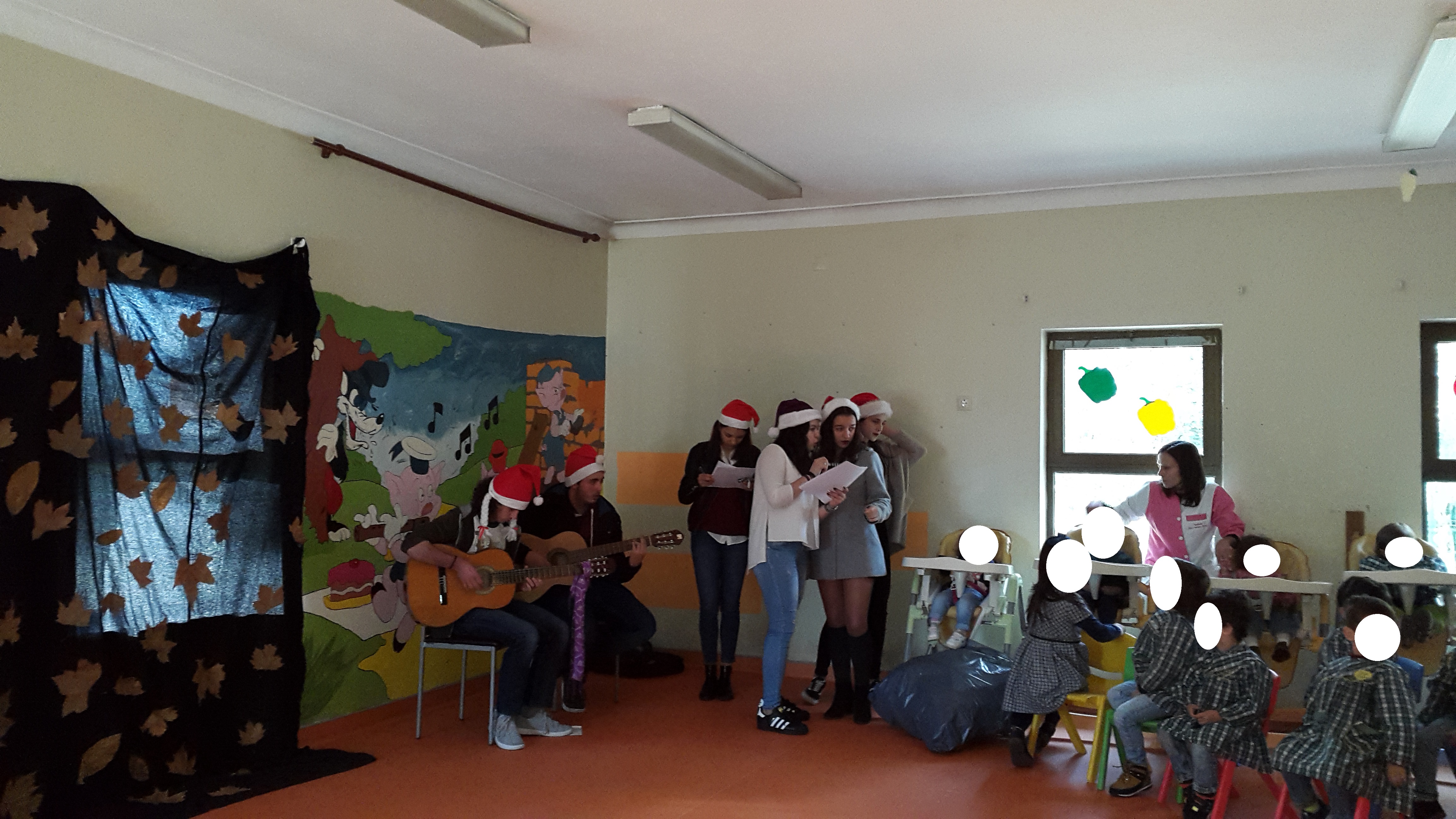 Depois da peça, os atores interagiram com a petizada e chamaram o Pai Natal, para dar presentes feitos com amor e coração. Finalmente, os jovens dirigiram-se a uma das salas do jardim de infância para ouvirem uma canção que os meninos cantaram em inglês e para se despedirem deles.