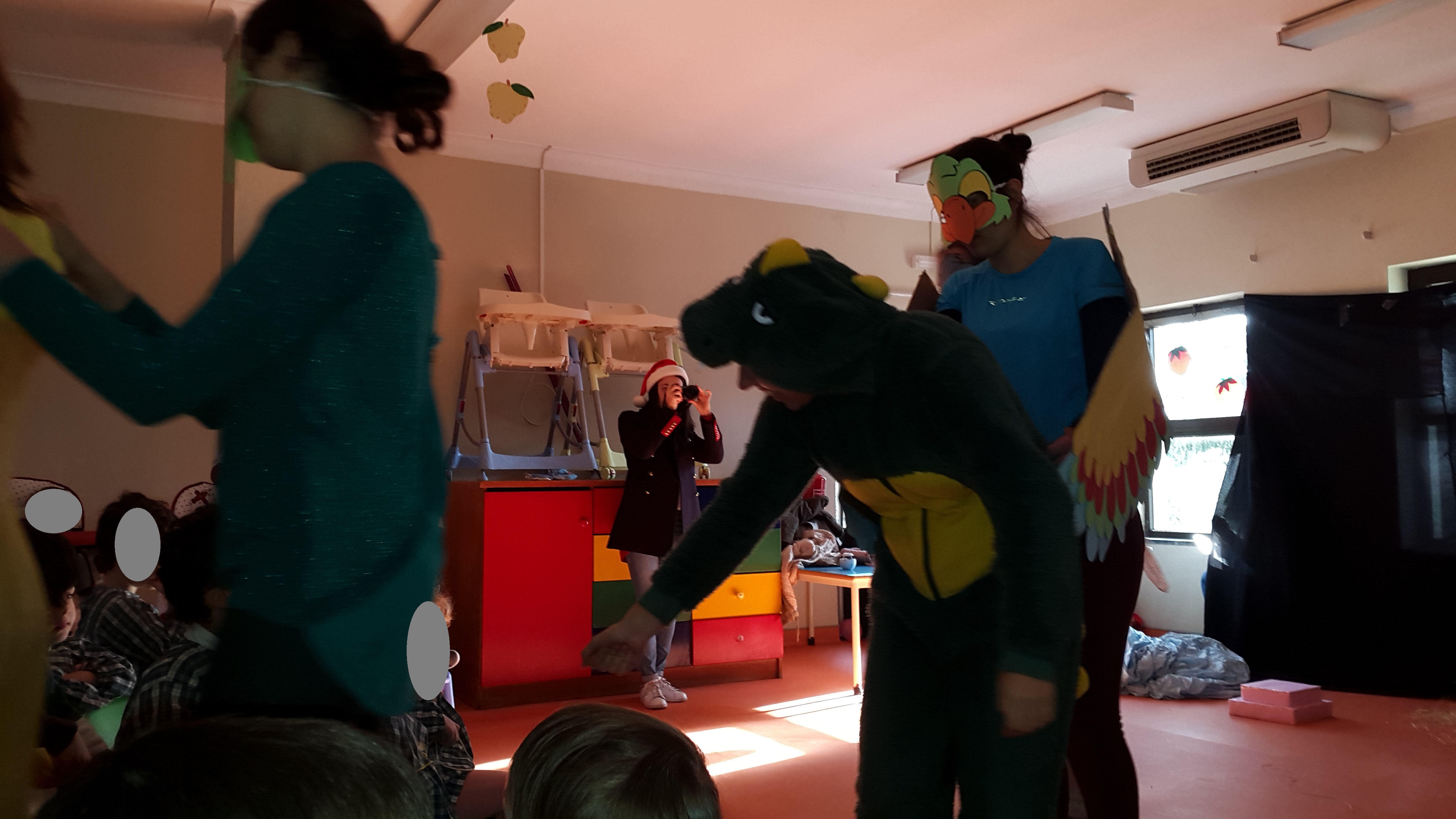 A atuação, que contou com a adesão e felicidade fascinantes dos bebés e das crianças da Fundação, apresentava a história duma galinha que passa a ser mãe de vários animais diferentes e que tem de os proteger de um rapaz cheio de más intenções, terminando de uma forma muito feliz.